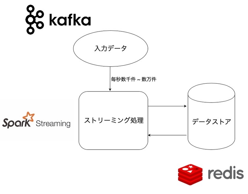 やりたかったこととしては、毎秒数千から最大数万件のデータをインプットとして、それら全てのデータの一部を別のデータとして高速なキーバリューストアにJSON形式で貯蓄していきたいということです。貯蓄するデータの件数は最終的に約数億件にもなります。