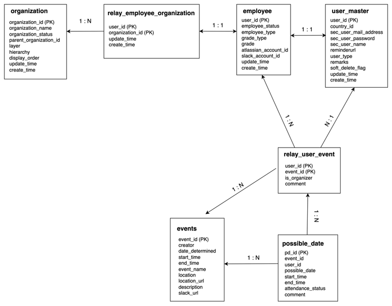 画面設計後、画面に表示/入力される情報がどんなものか、どうやってテーブルに分けたらうまく管理できるのかということを実装を見据えながら考えて設計しました。